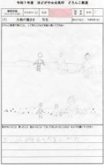 以外と稲が育っていて良かった。大根ってけっきょく間引くから、3つもまかなくてもいいのにと思っていたけど、植物でも家族があるんだなと思った。写生って動かないものはかん単だけど動くものむずかしいなと思った。