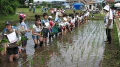 まで草取り、案山子づくり、稲刈りなどの米作りの行事を、楽しくケガ
