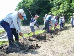 農場に戻り、次回のどろんこ教室の説明があり、解散となりました。次回は“田おこし”力仕事ですから、しっかり朝ごはんを食べて参加して下さいね。
