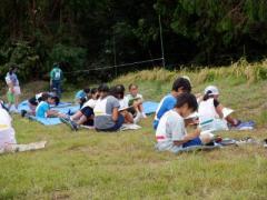 各自持参したクレヨンや色鉛筆で、思い思いの場所にシートを敷きとりかかりました。