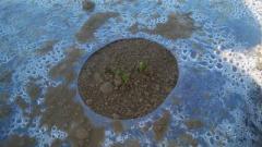 種まきして2日目、さすがにまだ芽はでていないだろうと思いましたが、ようく見ると、沢山のマルチ(穴の開いたビニールシート)の5つぐらいの穴に