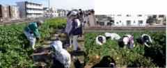 農場に移動して、大根の収穫体験