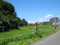 写真拡大 その後、トラックで農場まで運んだかかしをフェンス際や畦道に固定してかかし作りは無事終了。太陽がギラギラ照る農場で生徒も実行委員も汗だくでした。すずめもかかしを見てびっくりして近寄れないでしょう。