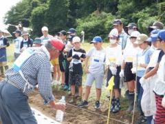 まずは三村先生にどのようにして種をまくのか教わりました。