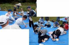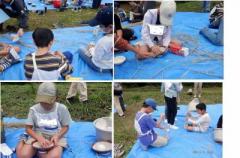 脱穀は牛乳パックを使いますが、途中稲穂が切れてしまったり、一回でスッと出来なかったりもありました。でも『気持ちいい!』の感想。そして籾摺りはすり鉢に入れた実をボールを使ってもみ殻をとっていきます。これがなかなか根気のいる作業ですが頑張りました。ここで玄米の出来上がり。最後精米はペットボトルに入れた玄米を白米にする作業です。棒で突いてぬかをとっていきます。これまた、なかなか力加減も難しく、苦戦してたね。