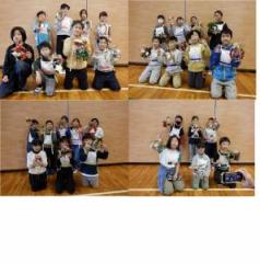 自分で作った紙粘土の飾りものを持ってきてお正月用飾りを仕上げた子も。